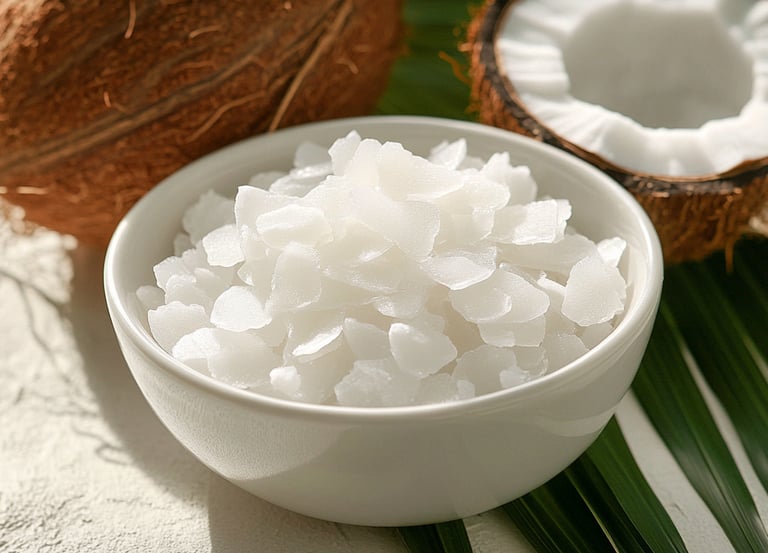 Le produit est purifié pour obtenir une matière stable, sous forme de flocons ou pastilles blanches, prête à être intégrée dans des crèmes, baumes, shampooings solides ou lotions.