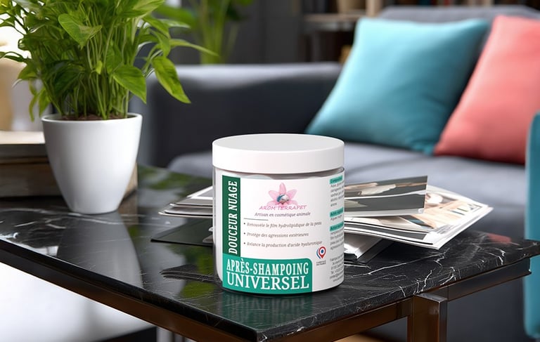 Les soins après-shampoing s’utilisent à la suite du rinçage final pour renouveler le film hydrolipidique naturel, souvent partiellement éliminé lors du shampoing. Ce film joue un rôle essentiel dans la protection de la peau contre les agressions extérieures comme la pollution, le froid ou les frottements. En restaurant cette barrière, les soins après-shampoing préservent l’hydratation, apportent souplesse et confort à la peau, et contribuent à maintenir un poil sain, brillant et résilient. Indispensables pour une routine complète, ils prolongent les bienfaits du toilettage tout en respectant l’équilibre cutané.