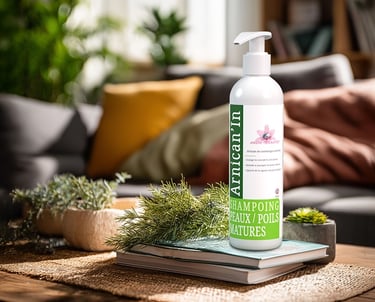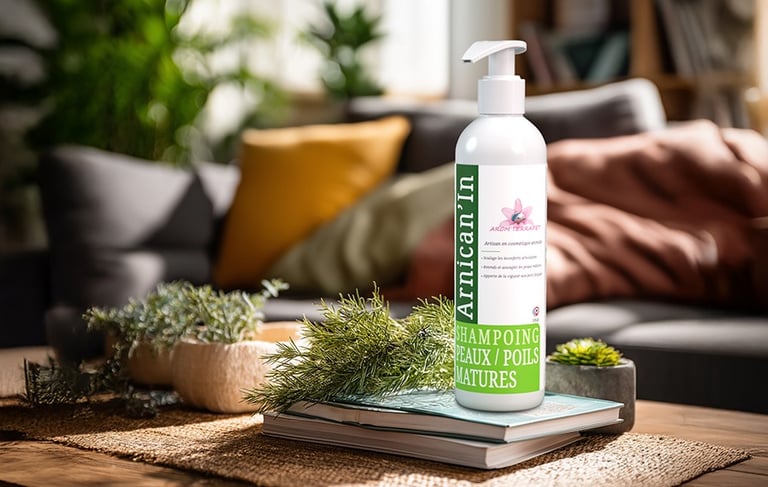 Le shampoing Arnican’In associe des huiles essentielles de lavandin, pin, gaulthérie couchée, eucalyptus citronné et harpagophytum à des huiles végétales de sésame, nigelle et arnica montana. Il est spécialement formulé pour les animaux matures ou sensibles, afin d’apporter souplesse à la peau et confort au mouvement. Utilisé régulièrement, il aide à entretenir la qualité de la peau tout en procurant une agréable sensation de bien-être pendant et après le bain. Idéal pour les chiens âgés ou peu actifs, il offre un moment de soin à la fois doux et revitalisant.