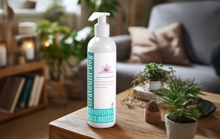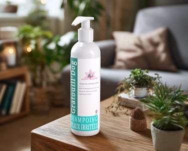 Le shampoing Gratouill’dog est formulé avec des huiles essentielles de tanaisie annuelle, lavandin, lavande aspic, menthe des champs, lemongrass et de l’extrait de calendula, reconnues pour leurs vertus apaisantes. Il aide à calmer les démangeaisons et à soulager les peaux irritées ou sensibilisées. Sa mousse douce nettoie sans agresser, tout en apportant fraîcheur et confort à l’animal. Idéal en cas de grattage régulier ou de peau sujette aux inconforts, Gratouill’dog offre un véritable moment de soulagement au bain.