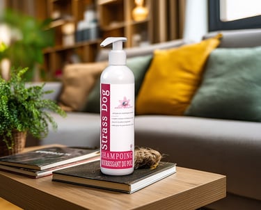 Le shampoing Strass Dog est formulé avec un trio d’huiles précieuses de coco, macadamia et babassu qui nourrissent le poil en profondeur sans l’alourdir. Idéal pour régénérer les poils ternes et sans vie, il redonne volume, texture et éclat aux fourrures fatiguées. Sa mousse onctueuse enveloppe le poil et facilite le massage cutané, favorisant une meilleure oxygénation de la peau. Il est particulièrement adapté aux poils frisés et bouclés, pour lesquels il apporte souplesse et définition sans effet gras. On le recommande tout spécialement pour des races comme le Coton de Tuléar, le Bichon ou encore le Caniche. Avec Strass Dog, chaque toilettage devient une mise en beauté.