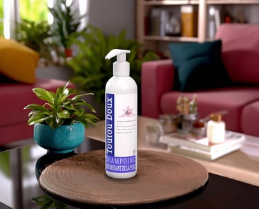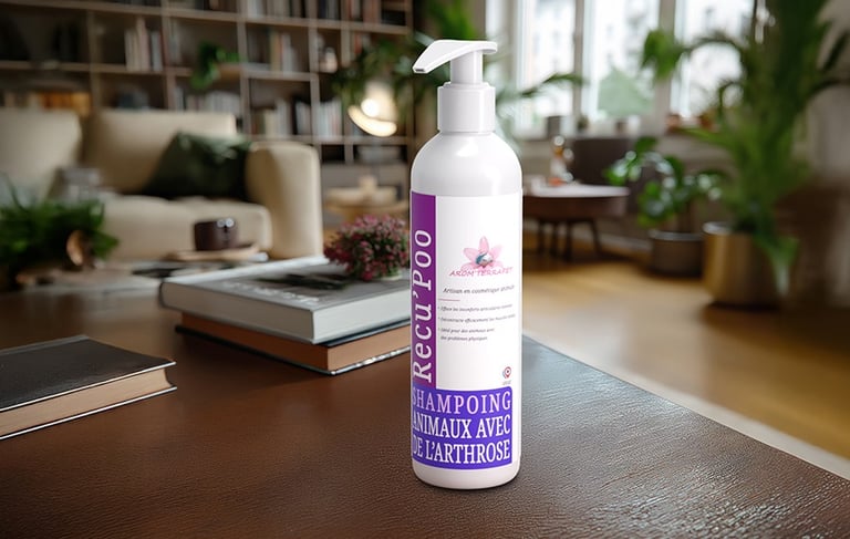 Le shampoing Recu’poo est enrichi en huiles essentielles d’arnica montana, tournesol, lavandin, pin, gaulthérie couchée, eucalyptus citronné et harpagophytum, connues pour leurs propriétés réconfortantes. Il est spécialement conçu pour les chiens fragilisés ou peu mobiles, afin d’apporter confort et légèreté au moment du bain. Utilisé en massage, il favorise la détente musculaire et contribue à améliorer la mobilité au quotidien. Idéal pour les chiens âgés, sportifs ou en récupération, Recu’poo transforme le toilettage en une pause bien-être revitalisante.