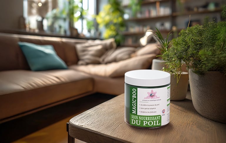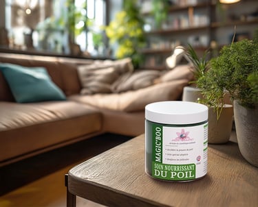 Le soin Magic’boo associe de la spiruline et de l’argile montmorillonite pour régénérer les poils fragilisés et stimuler leur pousse naturelle. Appliqué directement sur les zones ciblées, il nourrit le follicule pileux, ce qui favorise une croissance plus rapide et plus saine du poil. Il renforce la fibre capillaire tout en apportant souplesse, éclat et densité. Grâce à sa richesse en nutriments, Magic’boo redonne vitalité aux robes ternes, clairsemées ou abîmées. Idéal en soin localisé ou en entretien entre deux toilettages.